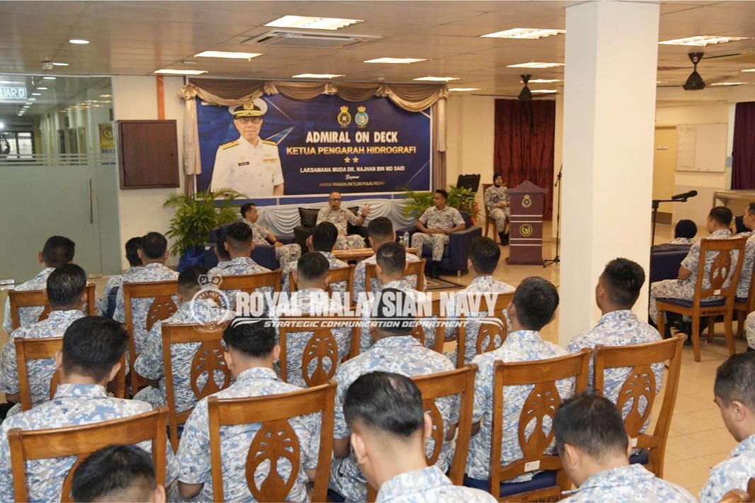 PULAU INDAH, 19 JAN 2026- ADMIRAL ON DECK PHN. Program Admiral On Deck bersama Ketua Pengarah Hidrografi, Laksamana Muda Dr. Najhan bin Md Said telah dilaksanakan khusus untuk Bintara dan Laskar Kanan ke bawah, sebagai platform komunikasi dua hala yang lebih dekat, terbuka serta konstruktif bersama warga Pusat Hidrografi Nasional (PHN). Melalui sesi perkongsian hala tuju organisasi, penyampaian dasar serta dialog terbuka, program ini berperanan memperkukuh kefahaman, menyemai kebersamaan dan mempertingkatkan komitmen seluruh PHNPeople dalam menyokong pelaksanaan misi Tentera Laut Diraja Malaysia (TLDM) serta inisiatif 365 PHN. Inisiatif ini mencerminkan pendekatan kepimpinan PHN yang inklusif dan berorientasikan insan, selaras dengan aspirasi membina budaya kerja organisasi yang profesional, berdaya tahan dan berprestasi tinggi.