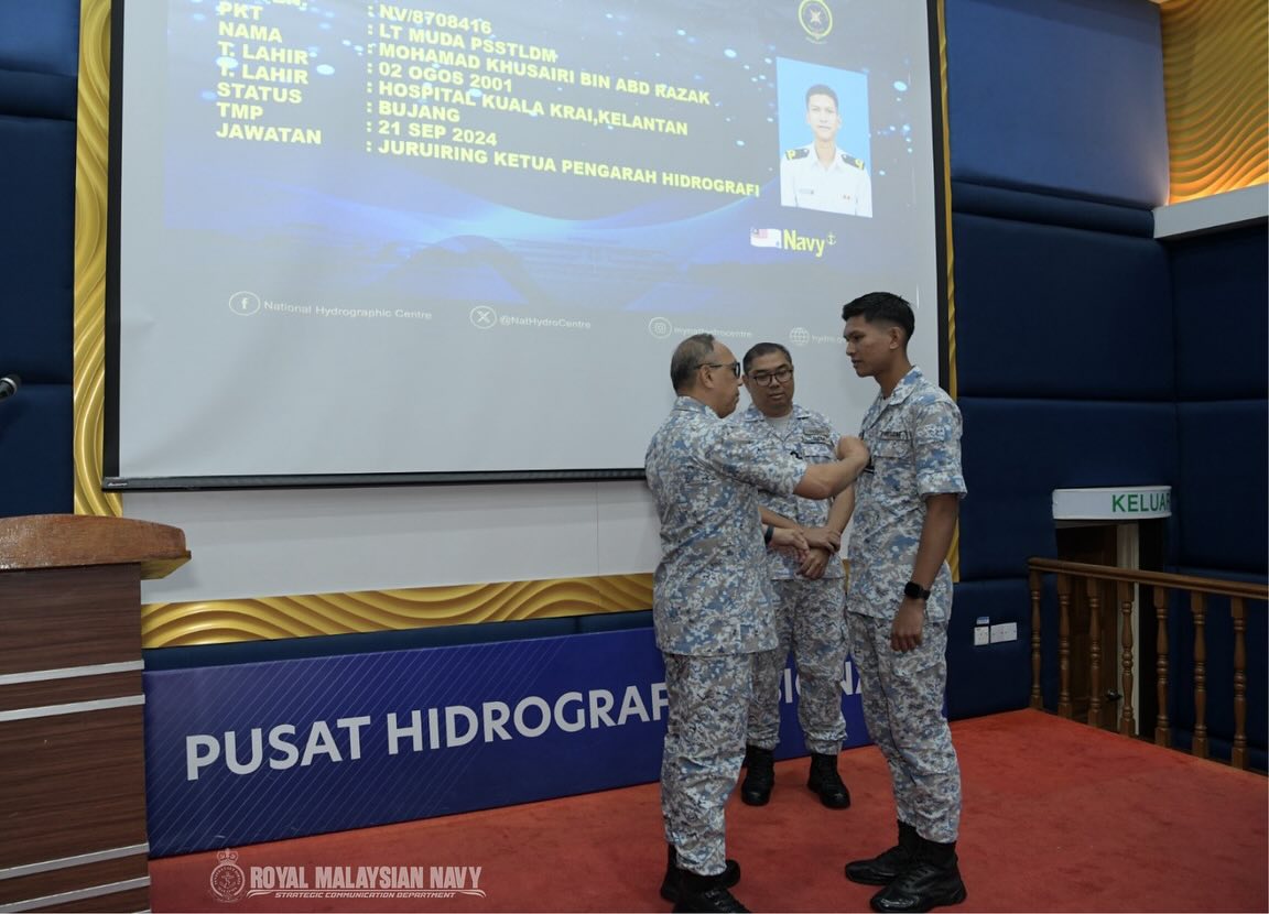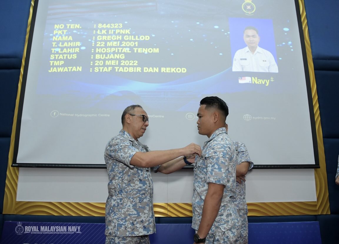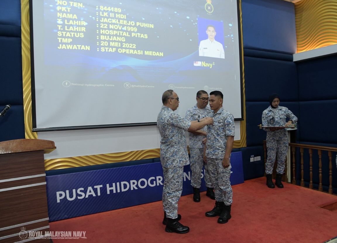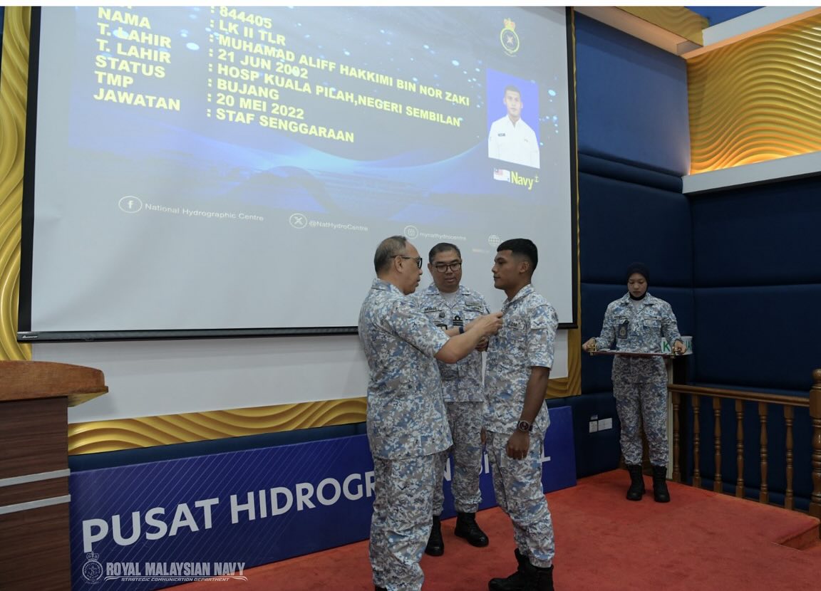PULAU INDAH, 4 DIS 2025- MAJLIS PEMAKAIAN PANGKAT WARGA PANGKALAN TLDM PULAU INDAH. Majlis pemakaian pangkat bagi Pegawai dan anggota Lain-lain Pangkat (LLP) telah dilaksanakan di Auditorium Pangkalan TLDM Pulau Indah pada 4 Dis 25. Seramai seorang pegawai dan 7 orang anggota telah dinaikkan pangkat pada pagi ini. Majlis telah disempurnakan oleh Ketua Pengarah Hidrografi, Laksamana Muda Dr. Najhan bin Md Said dan diiringi oleh Pengarah Geospatial Kdr Azrul Nezam bin Asri TLDM. Tahniah diucapkan kepada kesemua anggota dan pegawai yang dinaikkan pangkat. Semoga terus maju jaya di dalam perkhidmatan.